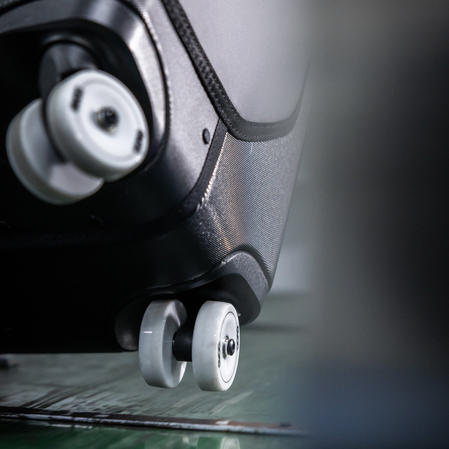 Ausgestattet mit dem QWD – Quiet Wheel Drive, mit intern entwickelten Skate-Rollen aus hyperelastischem Material, sorgt der Trolley für aussergewöhnlich leises, stabiles und langlebiges Rollen – selbst auf unebenem Untergrund.
