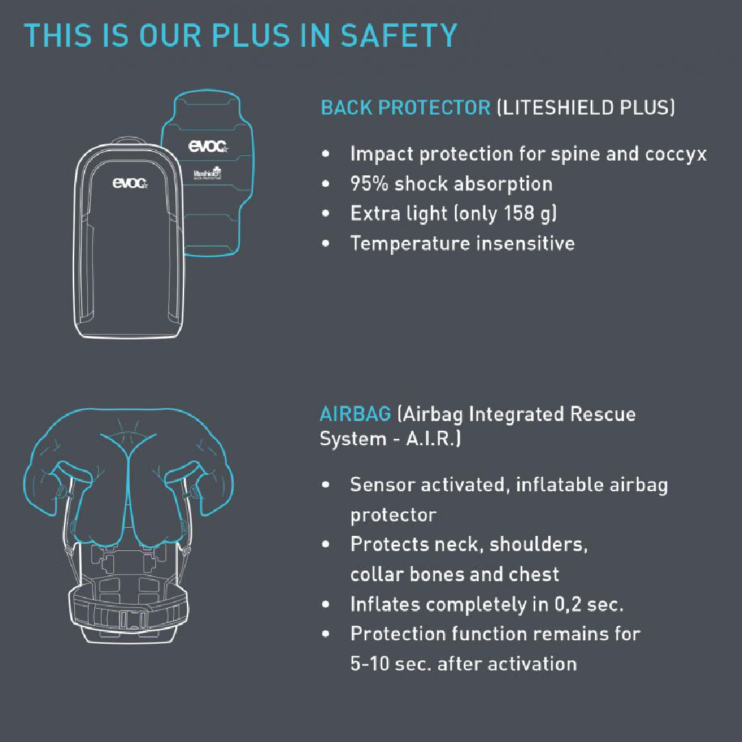 L'activation et la désactivation du système se font en fermant une boucle magnétique électrique sur la ceinture pectorale. Les capteurs rechargeables via USB analysent jusqu'à 1100 fois par seconde la position et l'emplacement du sac à dos et donc de l'utilisateur. Lorsque les conditions de déclenchement définies sont atteintes, par exemple en cas de chute, l'airbag se gonfle en seulement 0,2 seconde et déploie tout son effet protecteur. Il réduit jusqu'à 80% la force et l'accélération de freinage (HIC - Head Injury Criterion) exercées sur les cyclistes. Le déclenchement mécanique fonctionne via l'explosion d'un e-allumeur. Après un déclenchement et une vérification que l'airbag n'est pas endommagé, le système peut être réutilisé en utilisant une nouvelle cartouche.