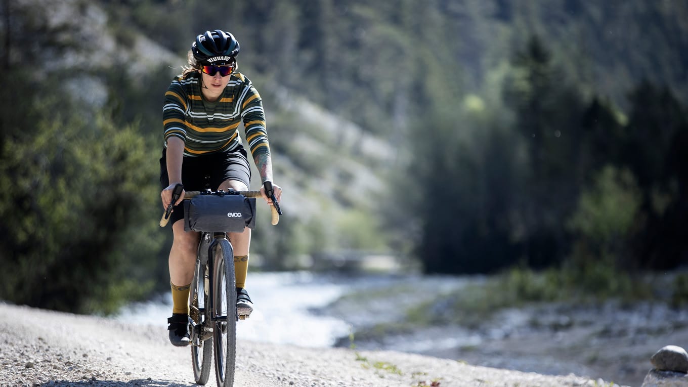 Kevin, responsable du développement commercial chez EVOC, a une tout autre prétention. Pour lui, le Gravel Bike est un équipement sportif qui a rendu les sentiers à nouveau intéressants. Courbes, petits sauts et passages techniques sont ce que l'ancien testeur de vélo veut prendre sous ses roues, en combinant la vivacité d'un vélo de route avec la nouvelle dimension de la mobilité tout-terrain. Aujourd'hui, il veut pousser un peu plus au sud et n'a donc besoin que d'un peu de nourriture supplémentaire et de vêtements de rechange à bord. Par conséquent, l'espace requis pour les sacs est également gérable. Pour lui, il est beaucoup plus important qu'ils soient bien fixés et restent toujours en position, même lors de mouvements sportifs.